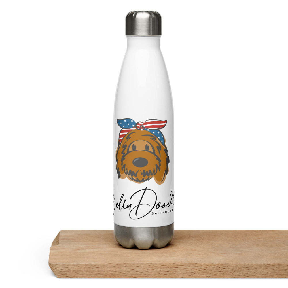 Patriotic Solid Doodle with Headband- Stainless Steel Water Bottle