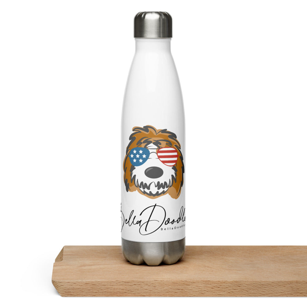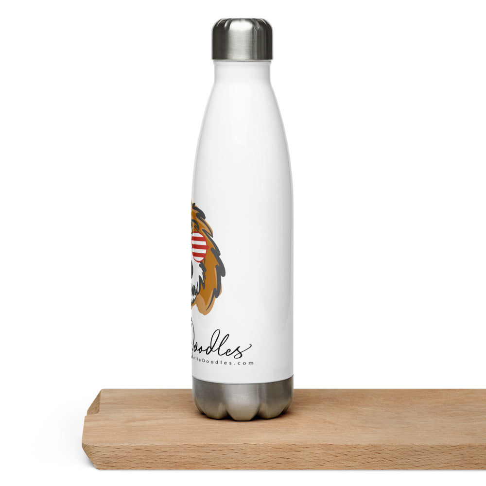 Patriotic Tuxedo Doodle with sunglases-Stainless Steel Water Bottle