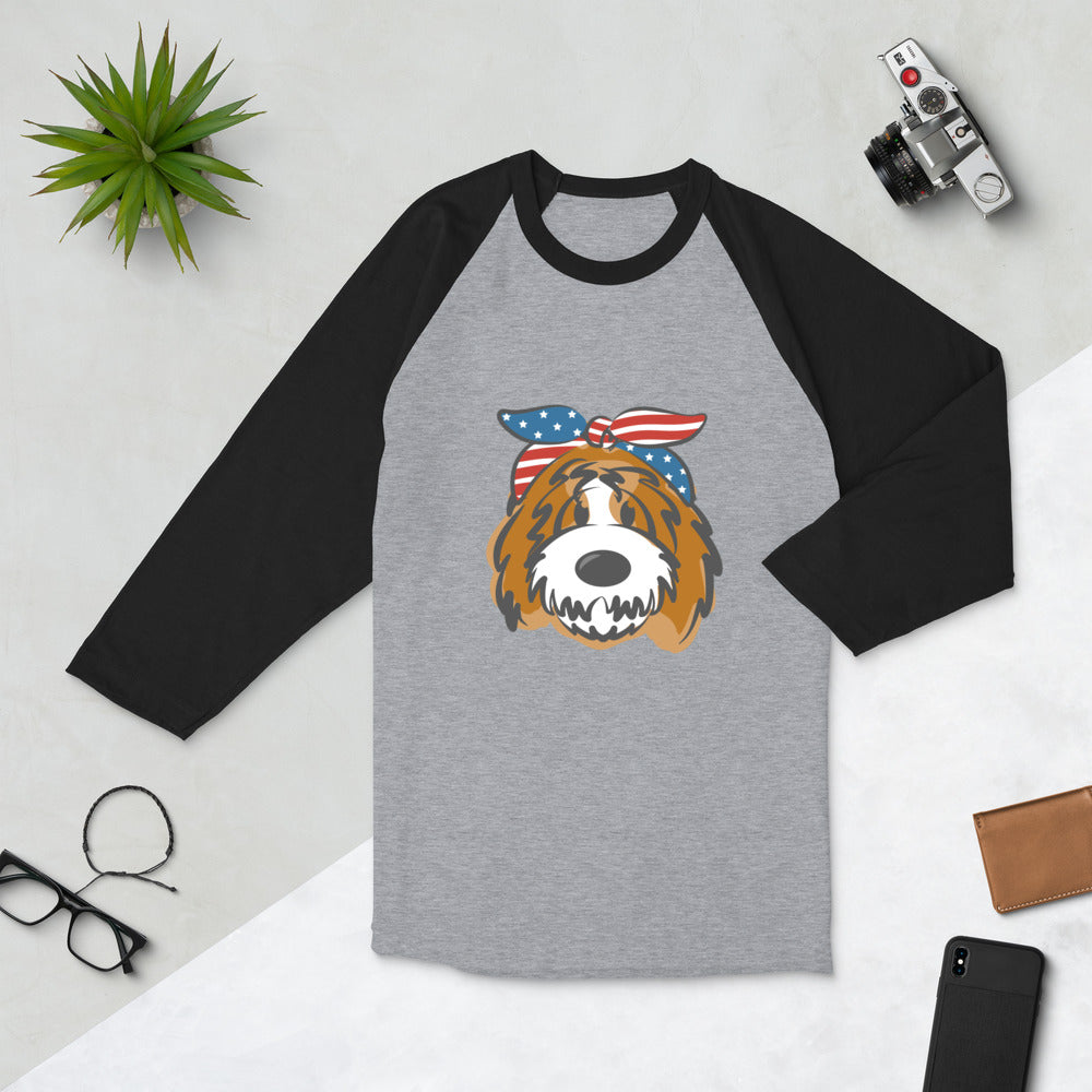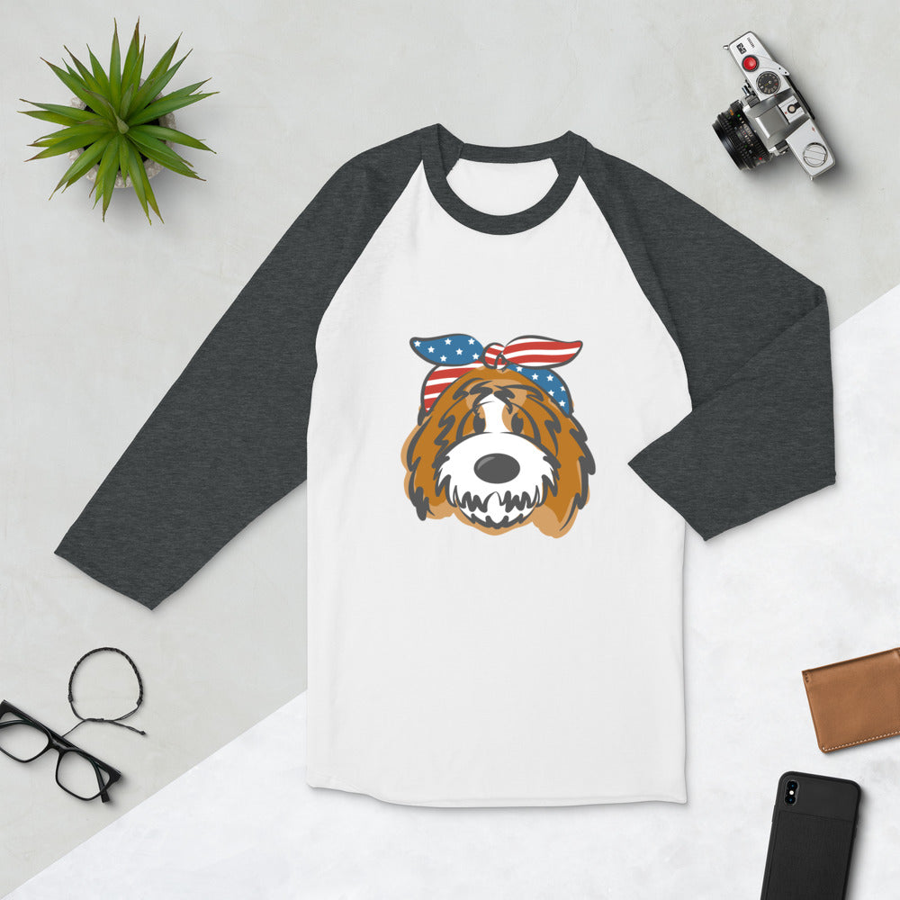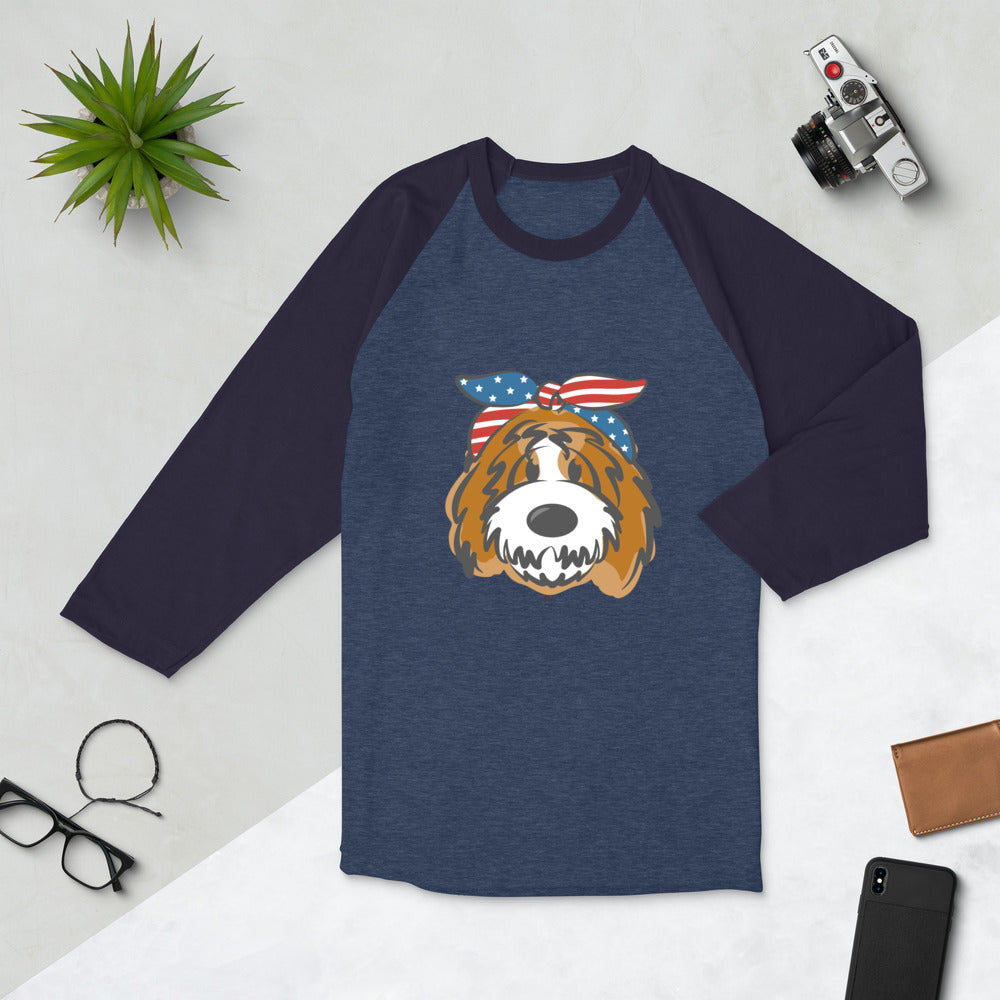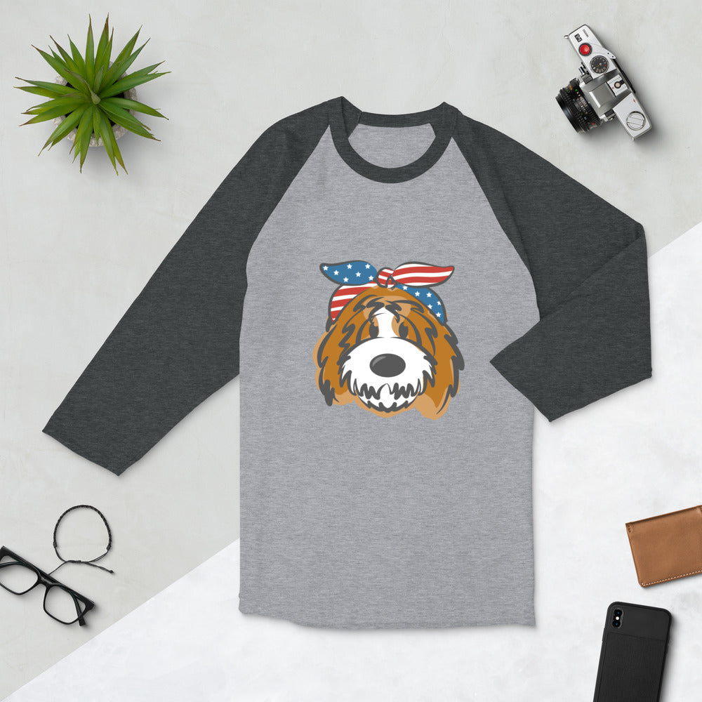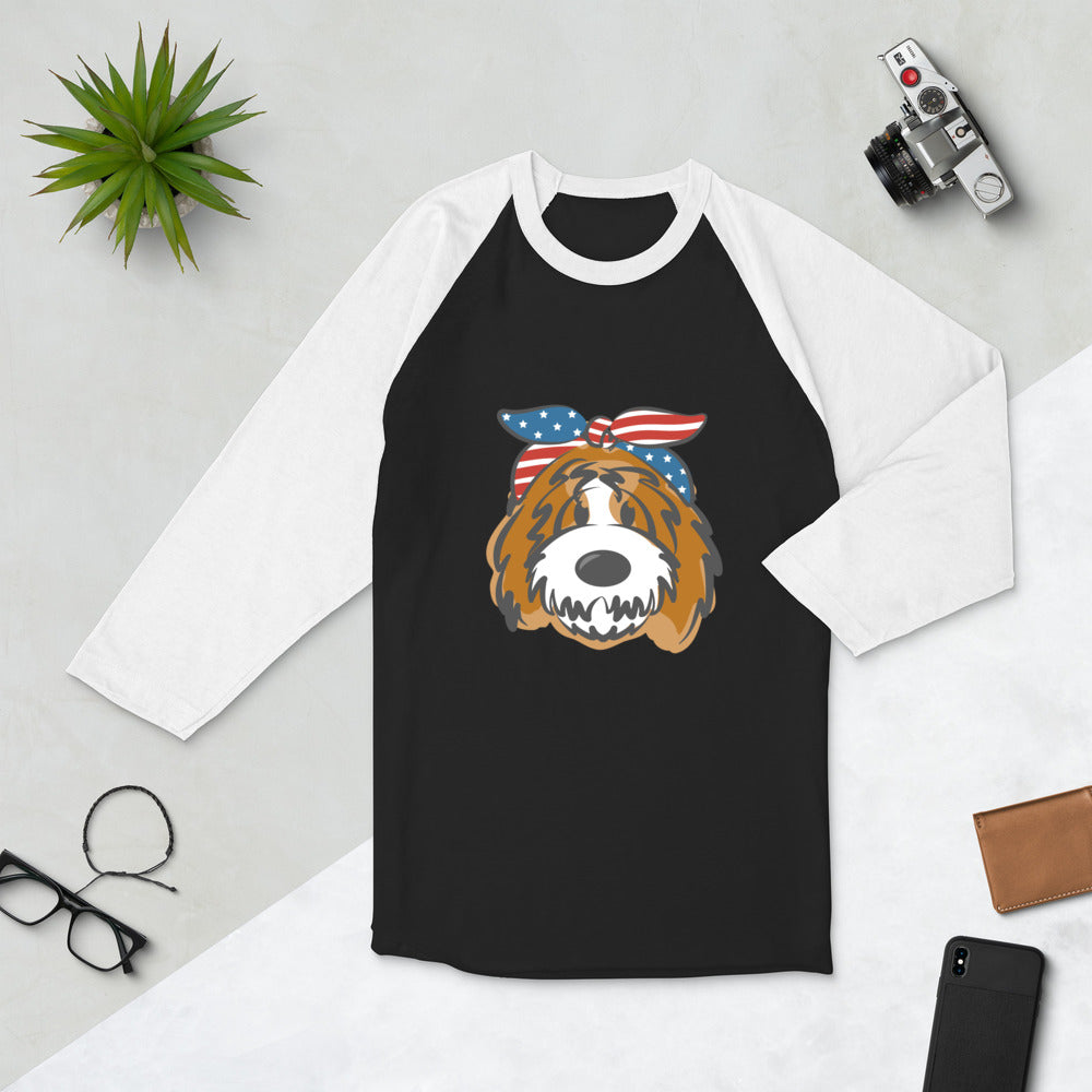 Patriotic Tuxedo Doodle with Headband 3/4 sleeve raglan shirt
