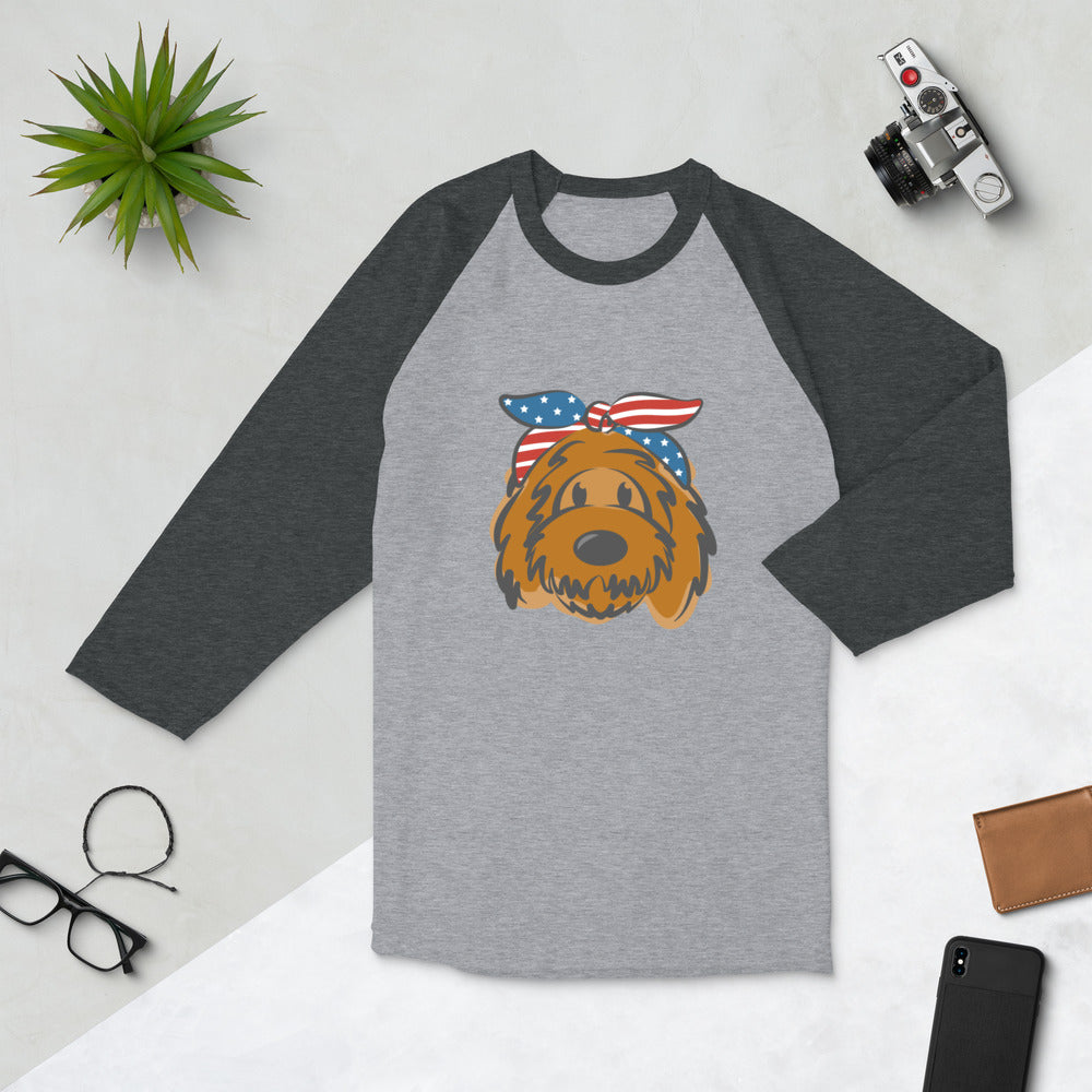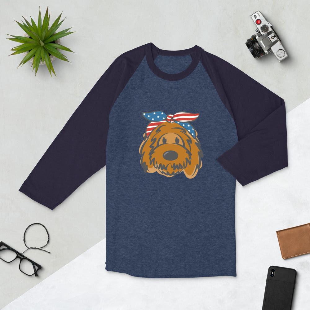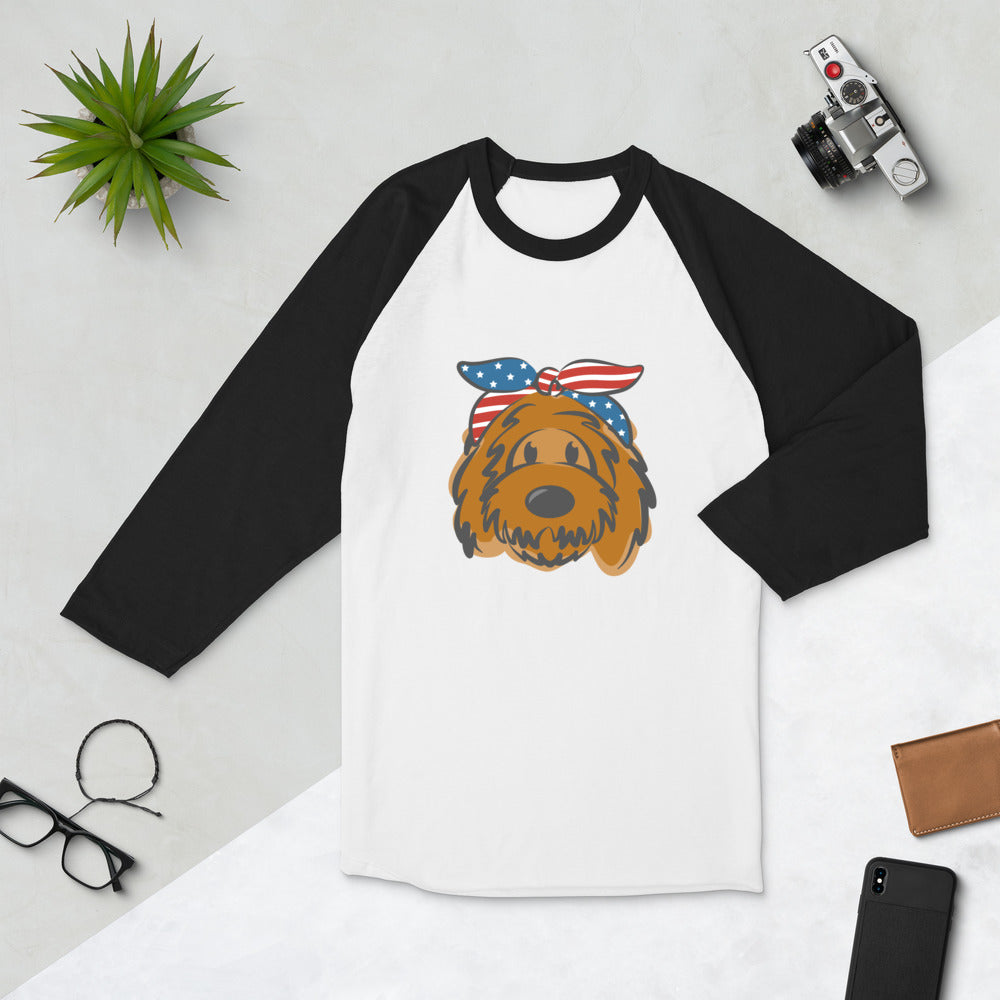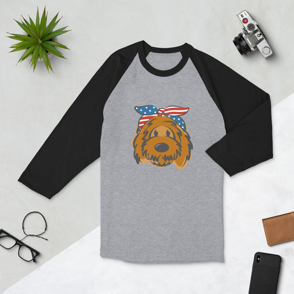 Patriotic Tuxedo Doodle with Headband 3/4 sleeve raglan shirt